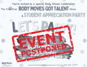 Due to unforeseen circumstances, the Body Moves “GOT TALENT” & STUDENT APPRECIATION event is POSTPONED indefinitely.