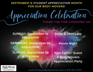 September is STUDENT APPRECIATION MONTH at Body Moves.
